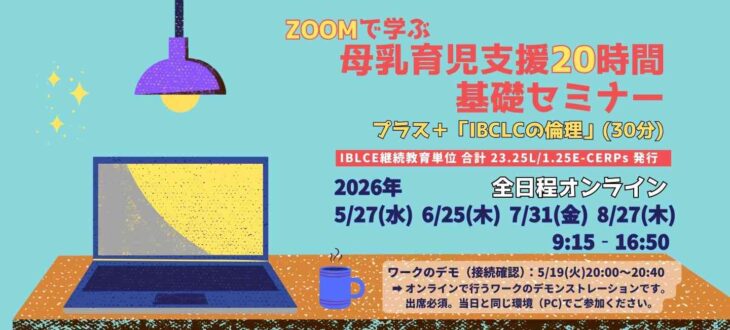 IBCLCが講師を務めるセミナーでは、授乳中の母と子がいつも一緒にいることのできる社会づくりを応援する立場から、授乳中のお子さまと一緒の参加を歓迎いたします。このセミナーが、母乳育児をごく自然に当たり前とする優しい社会の第一歩となることを願っています。